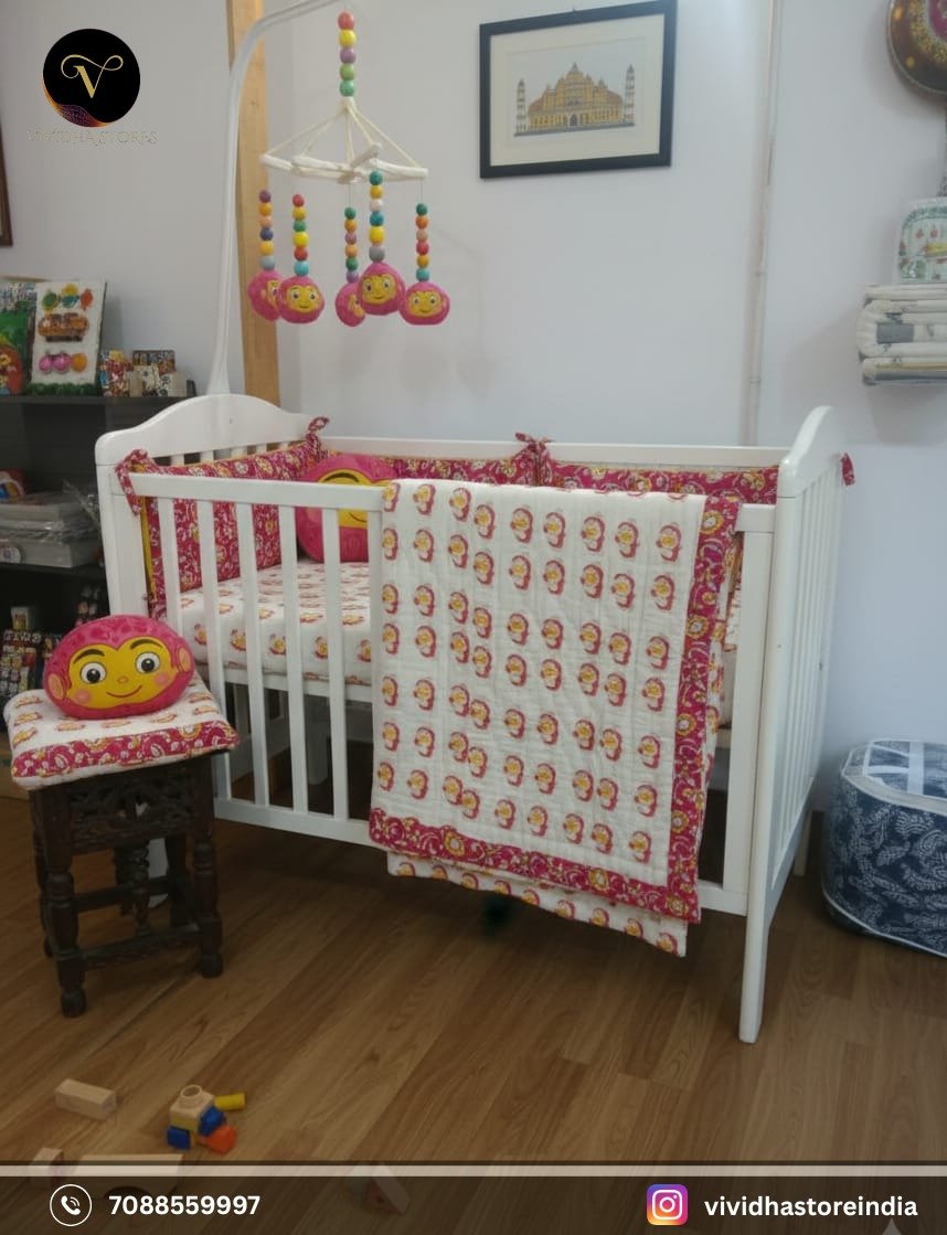 Our soft reversible block printed quilt is just what your little one needs for a perfect good night sleep.