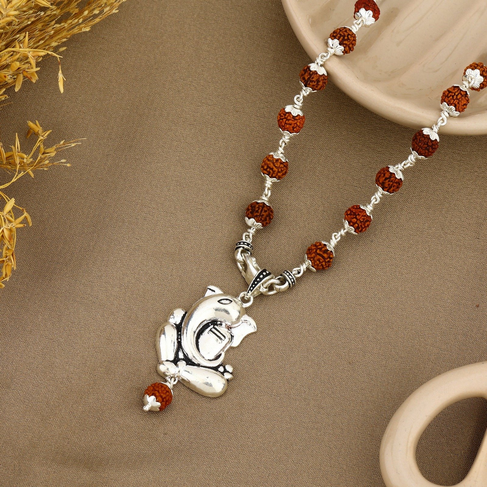 Rudraksha holds immense spiritual significance in Indian tradition, believed to bring peace of mind, enhance focus, and protect the wearer from negative energies. The silver setting adds purity and balance, making this pendant suitable for daily wear, meditation, and religious practices.