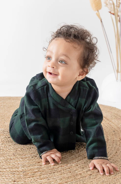 Celebrate the holiday season in style with this adorable Flannel Flexi Kimono in a classic plaid print! Cozy and comfortable, it keeps your little one warm while wrapping them in the festive spirit of Christmas.